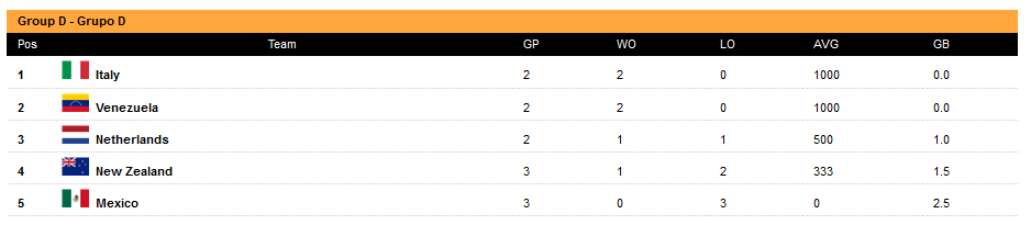 Since Venezuela beat New Zealand 9-8, the Dutch have climbed to the third spot in the losers bracket.
