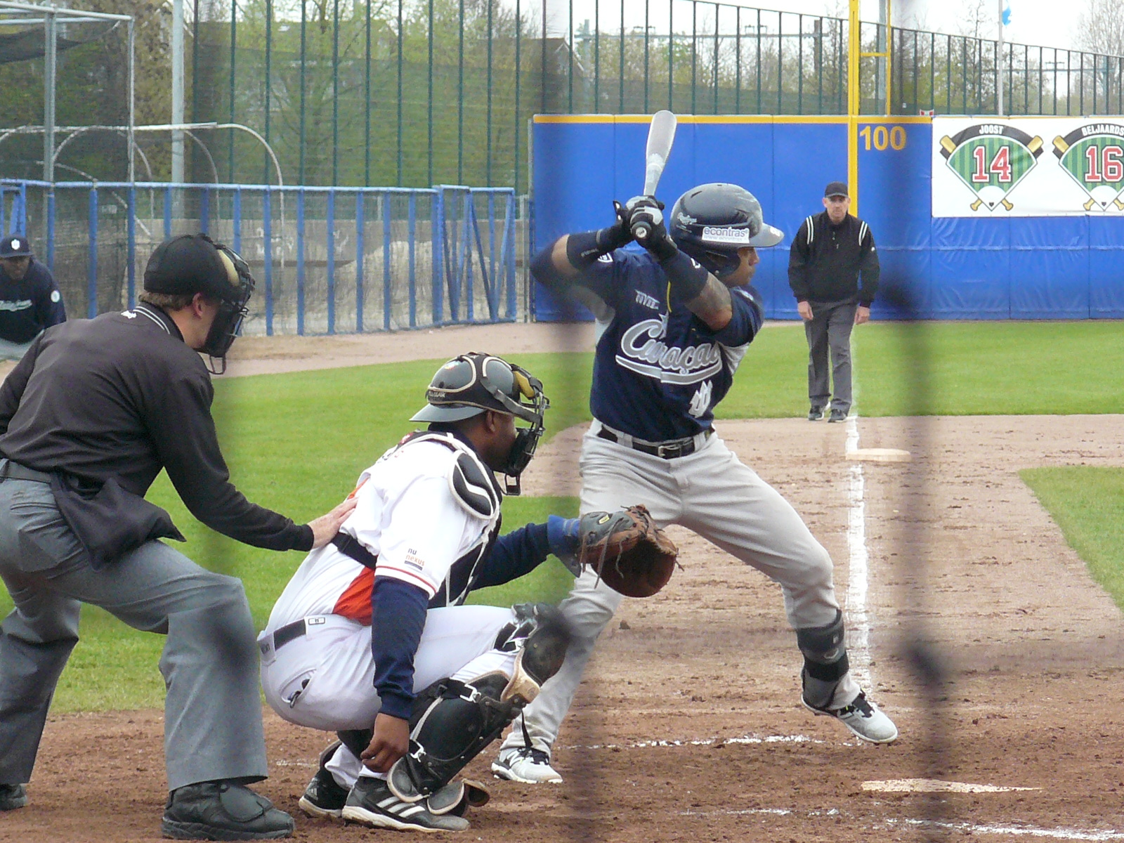 Diegomar Markwell cruised through seven innings. Kinheim could not get a grip on his pitching. Only Jasper Keijzer managed to drive in a run on a solo homerun (see photo on the left).
