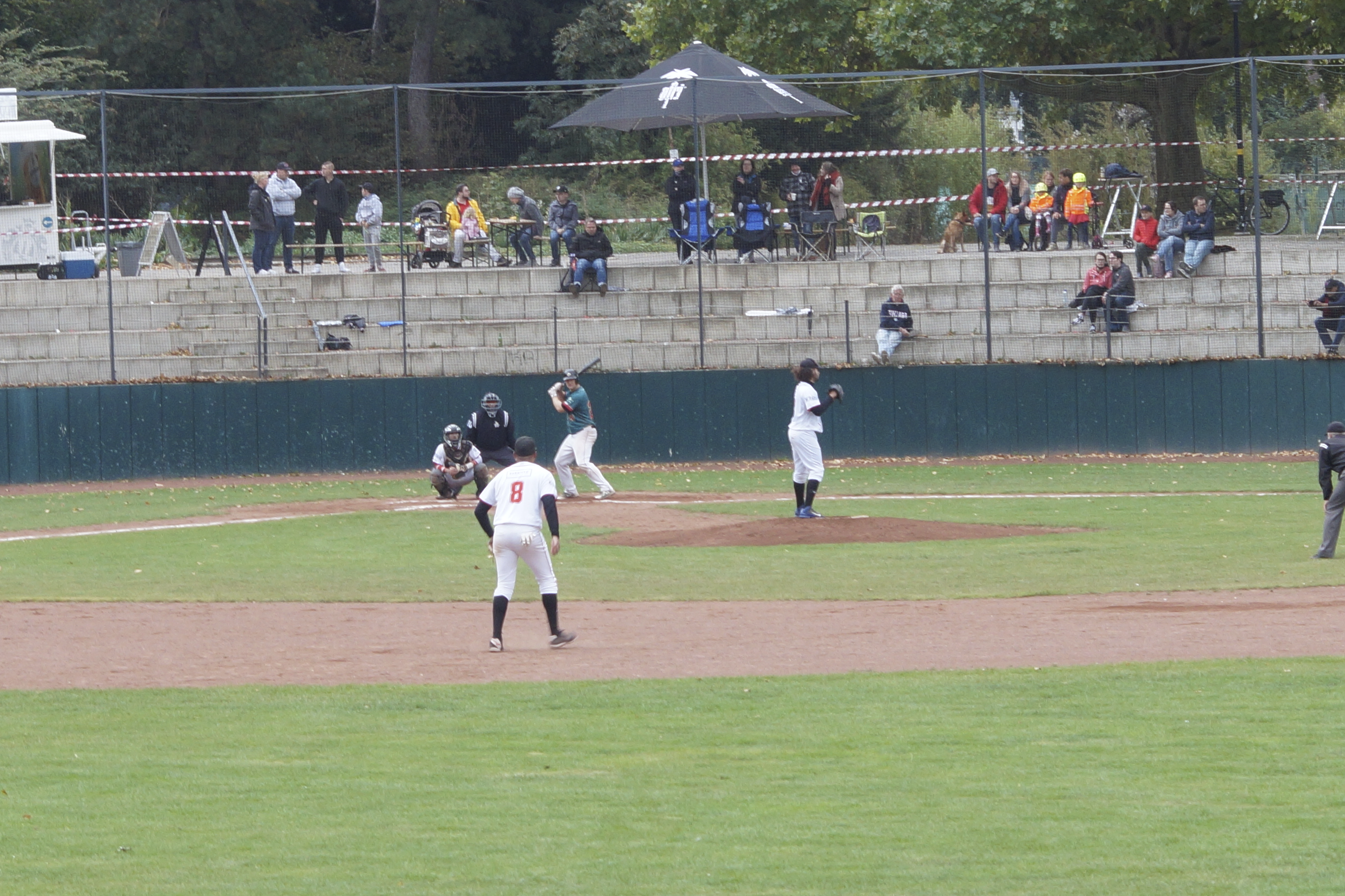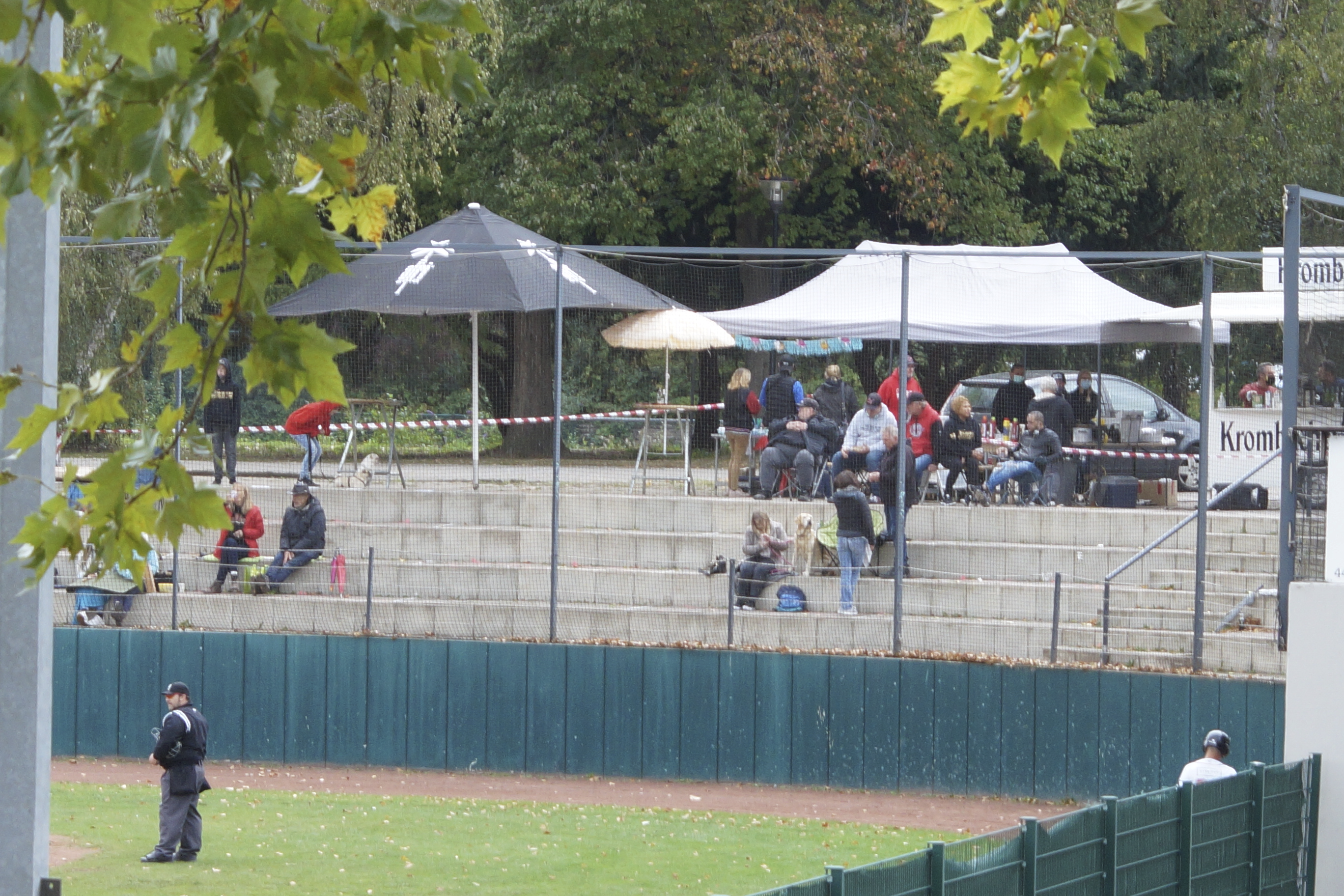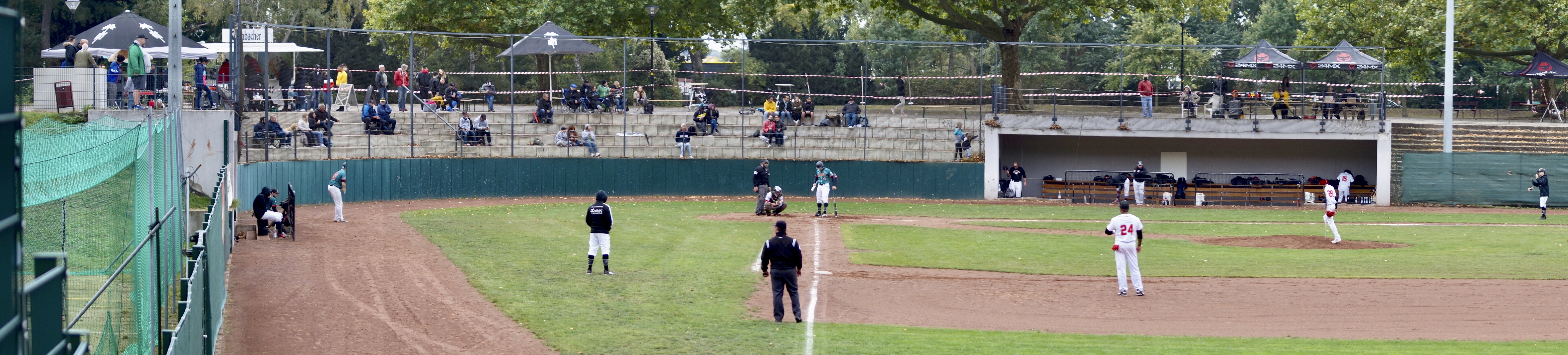 The playing surface is about 1,5 – 2 meters below the stands, so the spectators have a good view. As written above, the ballpark is surrounded by the lush of the park. There is a concourse that surrounds the ballpark completely, so from all sides you have a good view on the playing field.
