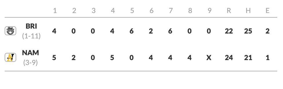 After Namur had taken a three-run lead (7-4) in the bottom of the second, Braine turned the tables as it scored four runs to take a one-run lead. But that lead did not last long as Namur countered with five runs.