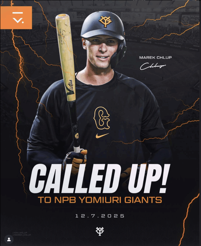 In September, 2024, Marek Chlup signed a so-called developmental contract with Nippon Professional Baseball’s Yomiuri Giants. It was the first for Japanese baseball that a player from the Czech Republic signed with a Japanese NPB team.