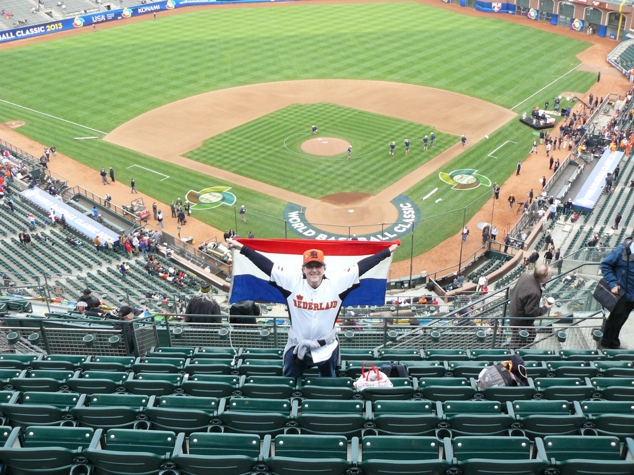 So I went to San Francisco with my brother-in-law, another baseball nut. During the warming up of both teams, I walked the concourse at AT&T Park, and there I bought the orange cap with black lid with an interlocking NL on the front. A few weeks before, I had bought the Dutch WBC jersey, so I supported my country in full fashion.